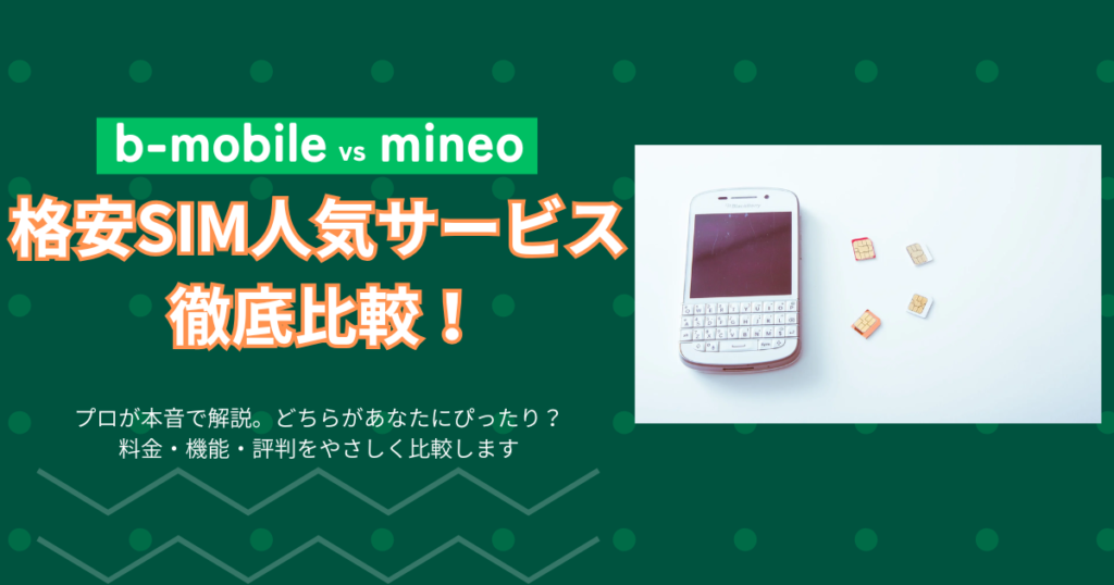 b-mobile vs mineo 格安SIM人気サービス 徹底比較! プロが本音で解説。どちらがあなたにぴったり? 料金・機能・評判をやさしく比較します 【SIMサービスが人気の理由】 月額料金がとにかく安い 格安SIM最大の魅力は、圧倒的なコストパフォーマンス。 大... -